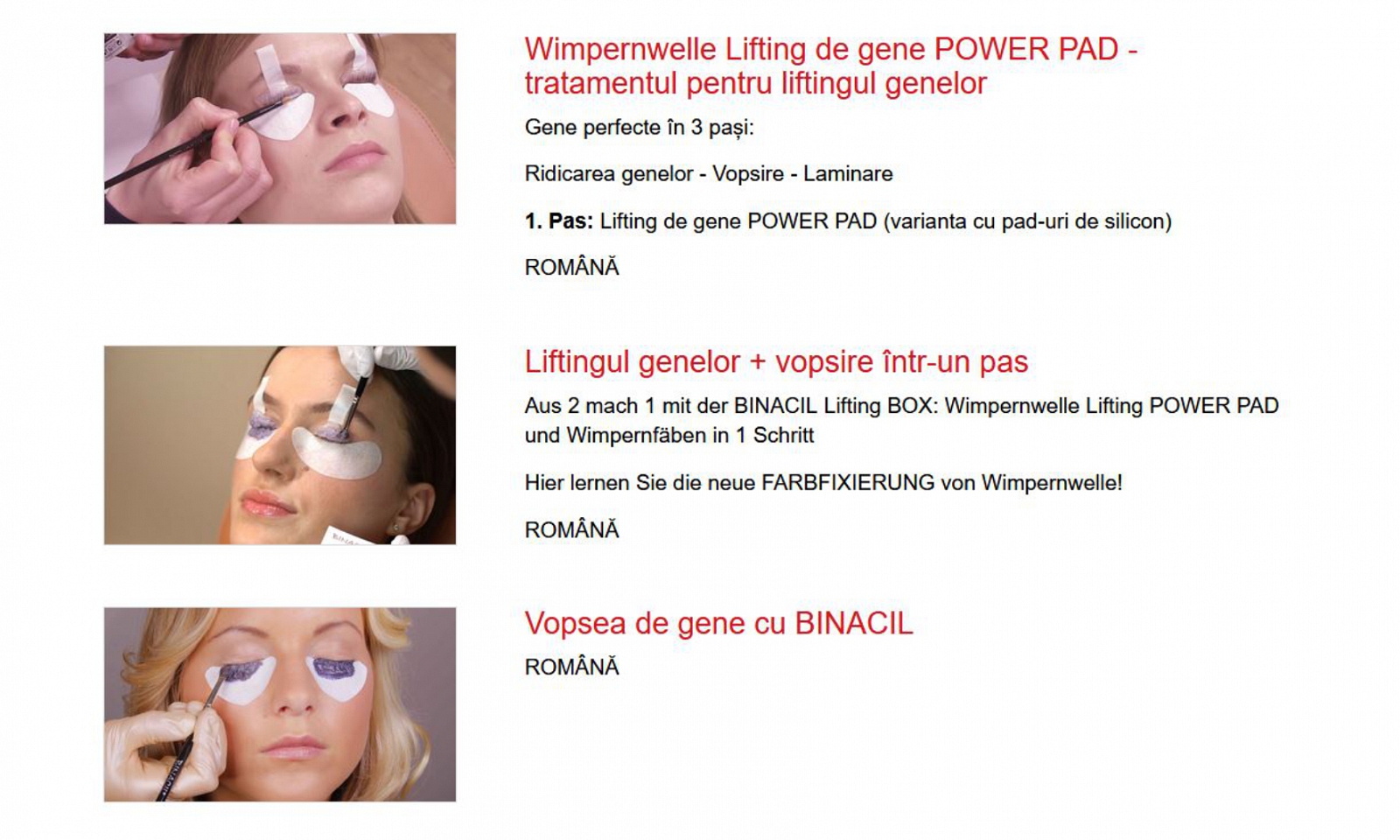 După ce genele au fost înmuiate, ca de obicei, cu GEL 1 in timpul procedeului de lifting cu POWER PAD-uri de la Wimpernwelle, un amestec special a GELULUI 2, noului GEL 3 de la BINACIL și vopseaua de gene sunt utilizate pentru fixare.