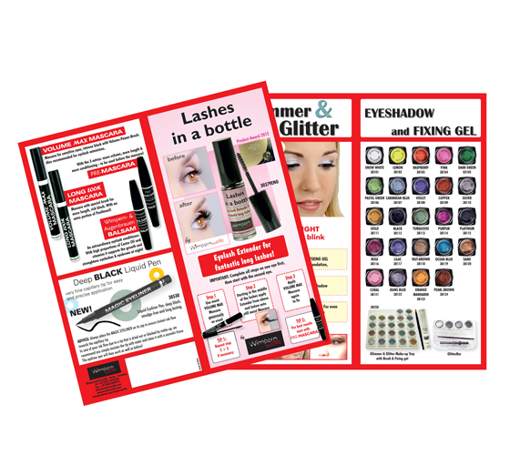 1 x Display (Acryl) with a backcard in English, 12 x Lashes in a bottle plus Tester: 1 x Lashes in a bottle and 1 x VOLUME MAX Mascara plus 1 x Poster, Customer brochures: "Decorative Cosmetics" (20 pcs.) and Lashes in a bottle instructions (20 pcs.)