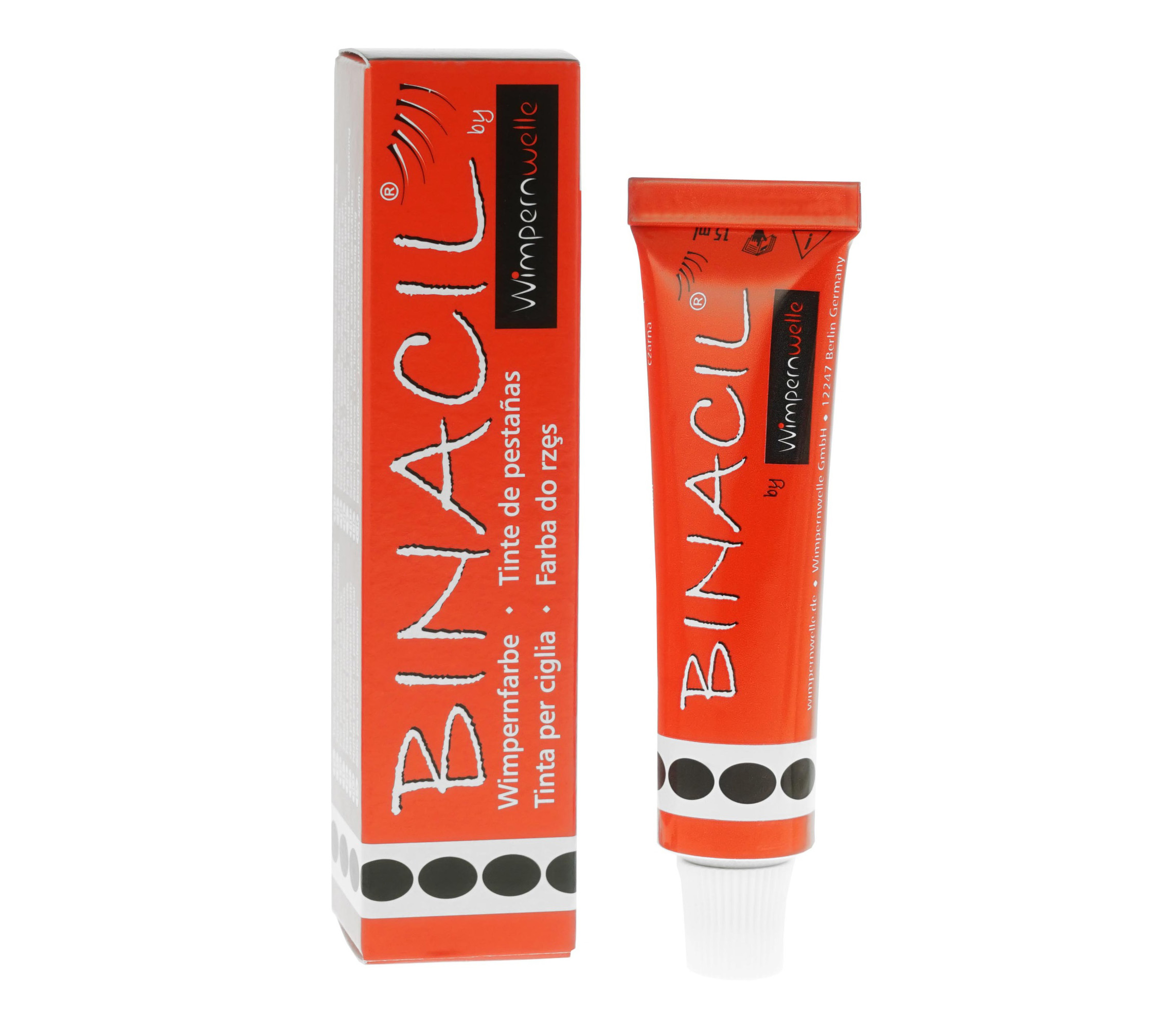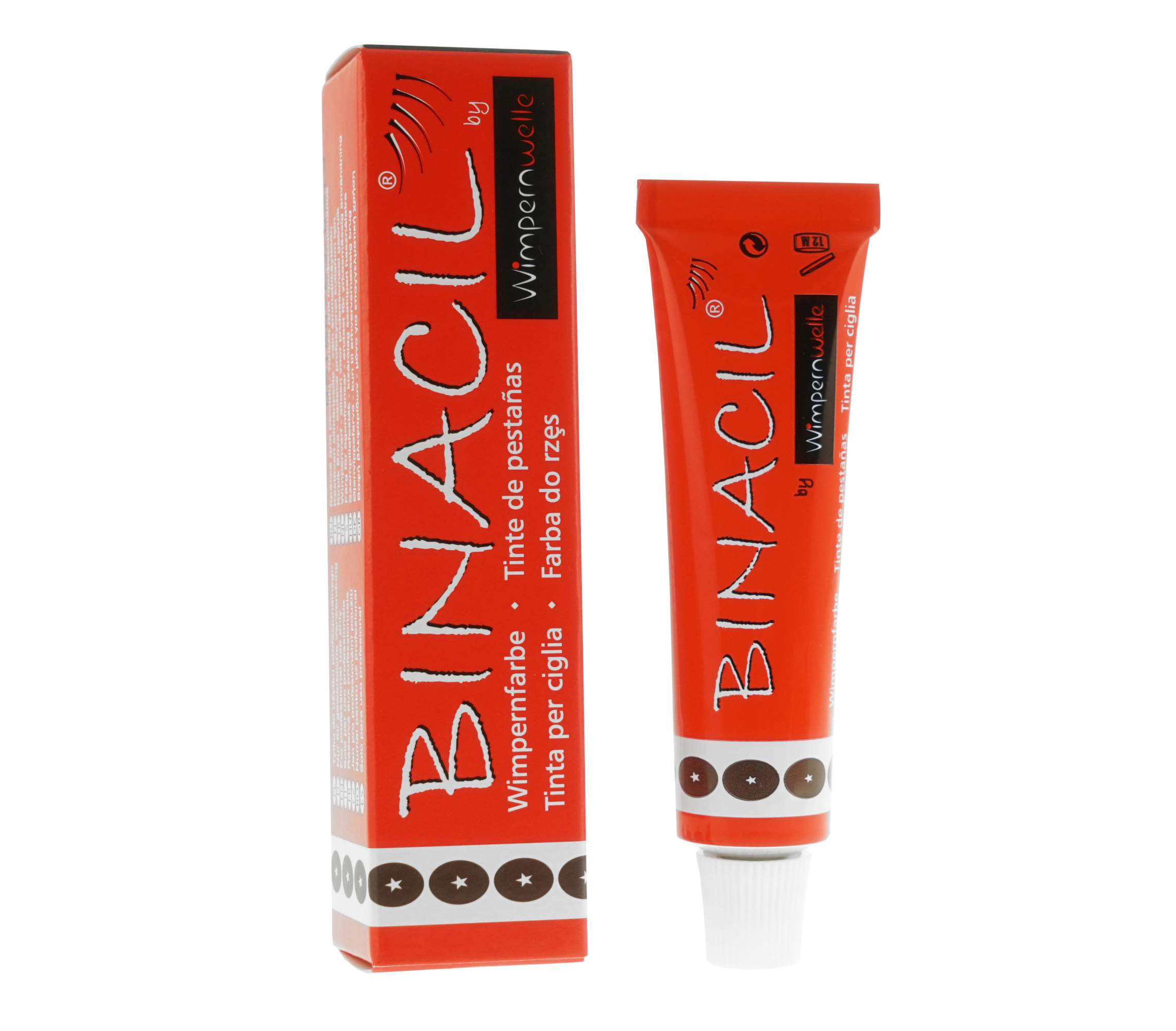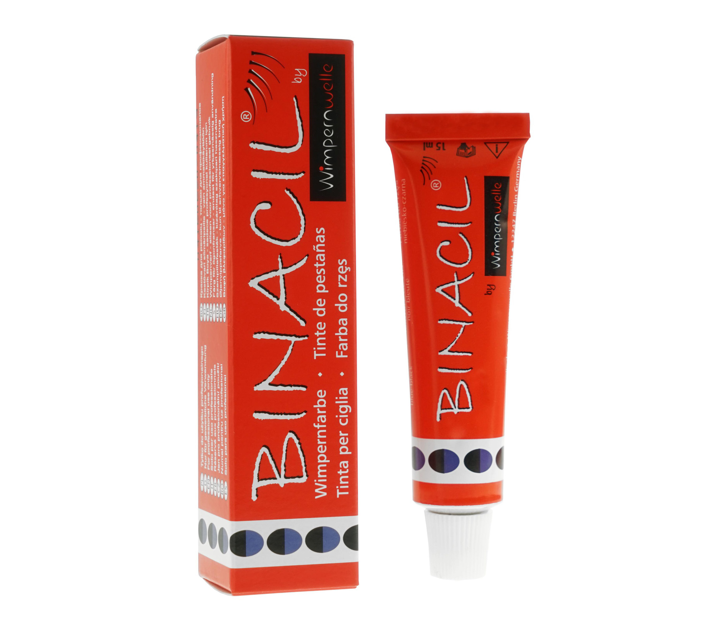 Jedna tubka zawiera 15 g farby BINACIL® do rzęs i brwi na ok. 40 zabiegów oraz 1 aplikator BINACIL® do mieszania i nanoszenia farby.