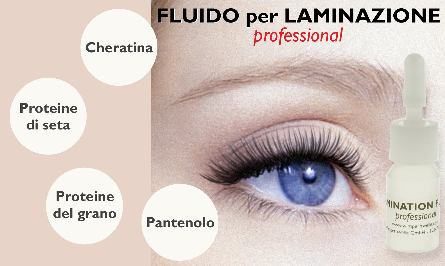 Laminazione con il FLUIDO per LAMINAZIONE professional è l'extra plus per ciglia lucide e forti alla fine di ogni trattamento. Il KERATIN BOOSTER contenuto in esso è una cura HIGHEND e rivitalizza la struttura delle ciglia.