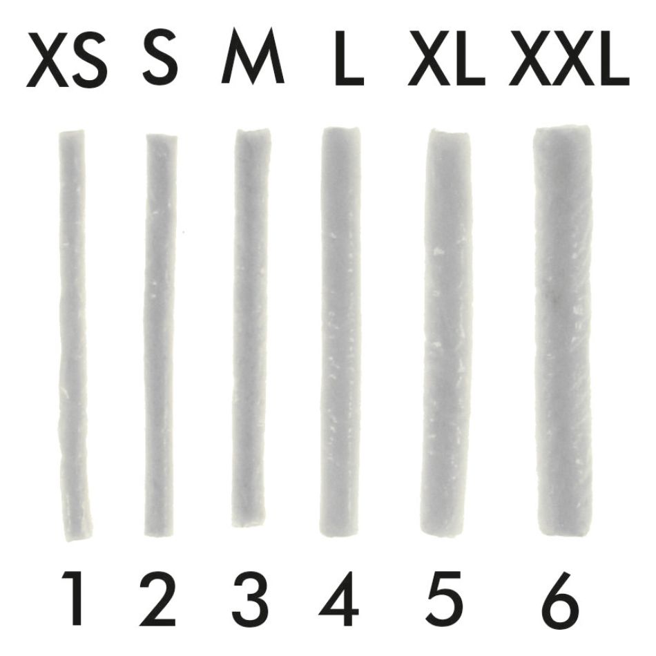 Disponibles en 6 tailles: N° 1- XS, N° 2- S, N° 3- M, N° 4- L, N° 5- XL, N° 6- XXL